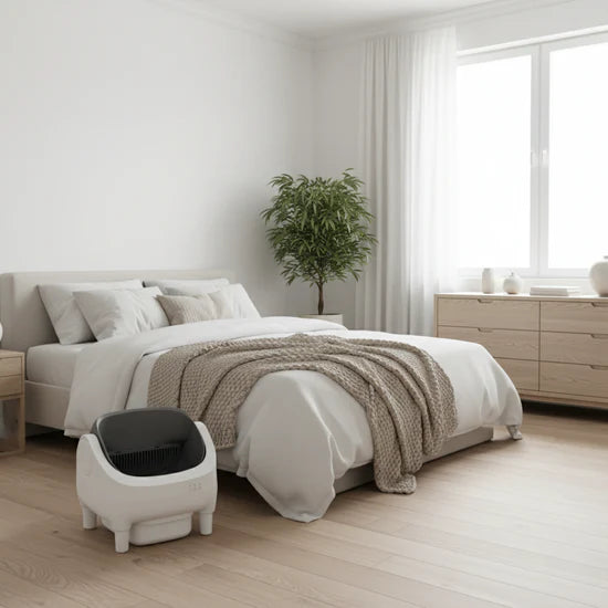 I keep the Teknivo CleanBox in my bedroom, and it doesn’t disturb me at all. No smells, no mess, and it’s very quiet when cleaning. It feels like part of my room décor, and my cat has never been happier with such a consistently clean space.