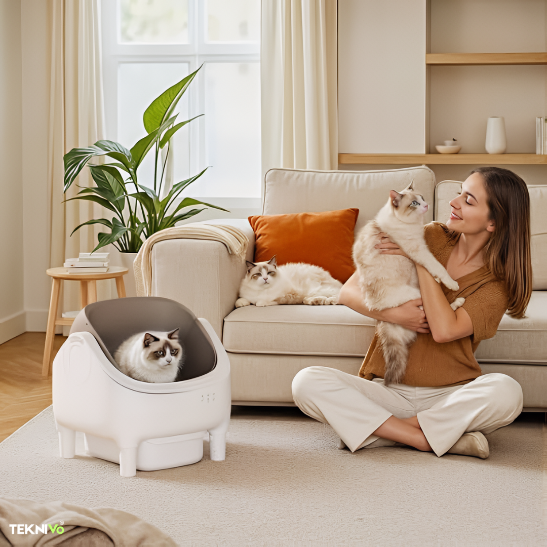 The Teknivo CleanBox™ automatically removes waste after each use, saving you from the hassle of daily scooping and keeping your cat’s space fresh without extra effort.