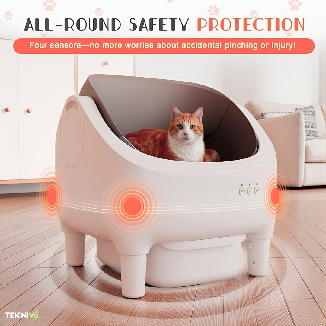 Equipped with advanced sensors and safety features, the Teknivo CleanBox™ pauses operation when your cat is nearby, giving you complete peace of mind.