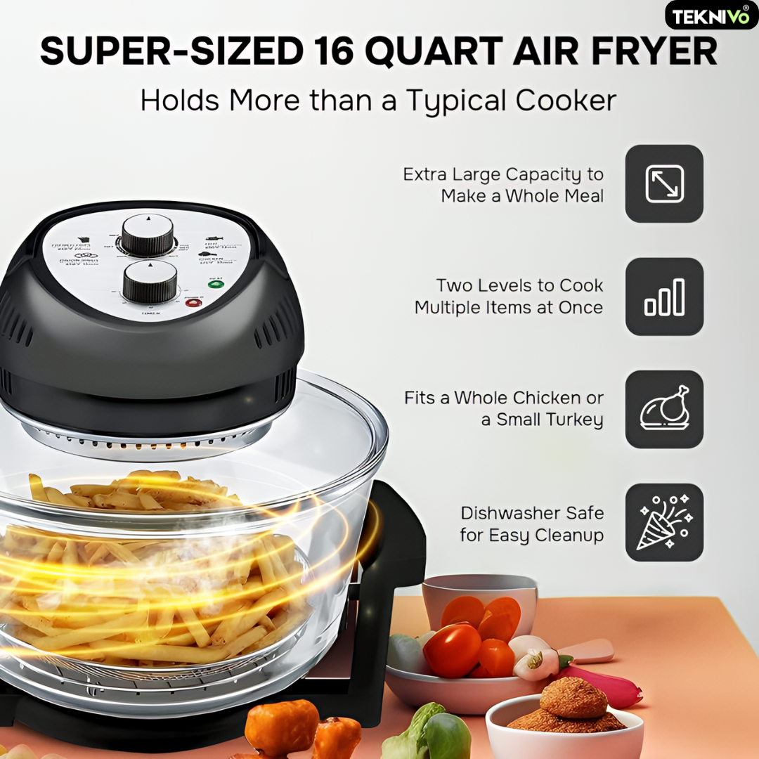 I’ve tried a few air fryers before, but the Teknivo Crisp is on another level! The 16-quart size is perfect for my family of five—I can cook chicken, fries, and veggies all at once. Everything comes out perfectly crispy and golden, and I love that it uses almost no oil. Cleanup takes seconds. Totally worth it!