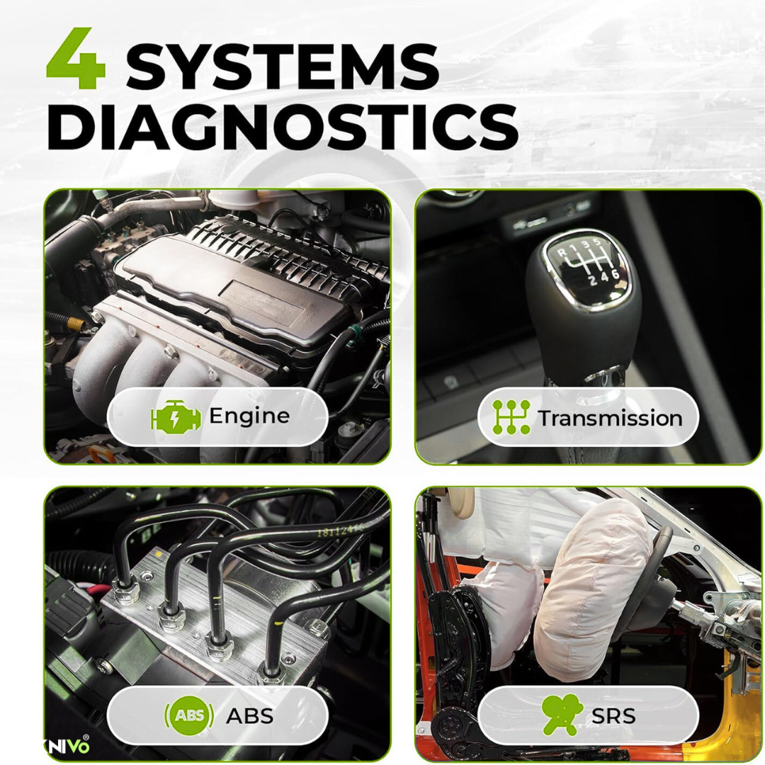 Diagnoses key systems like Engine, ABS, SRS, and Transmission, giving you a complete view of your car’s health.