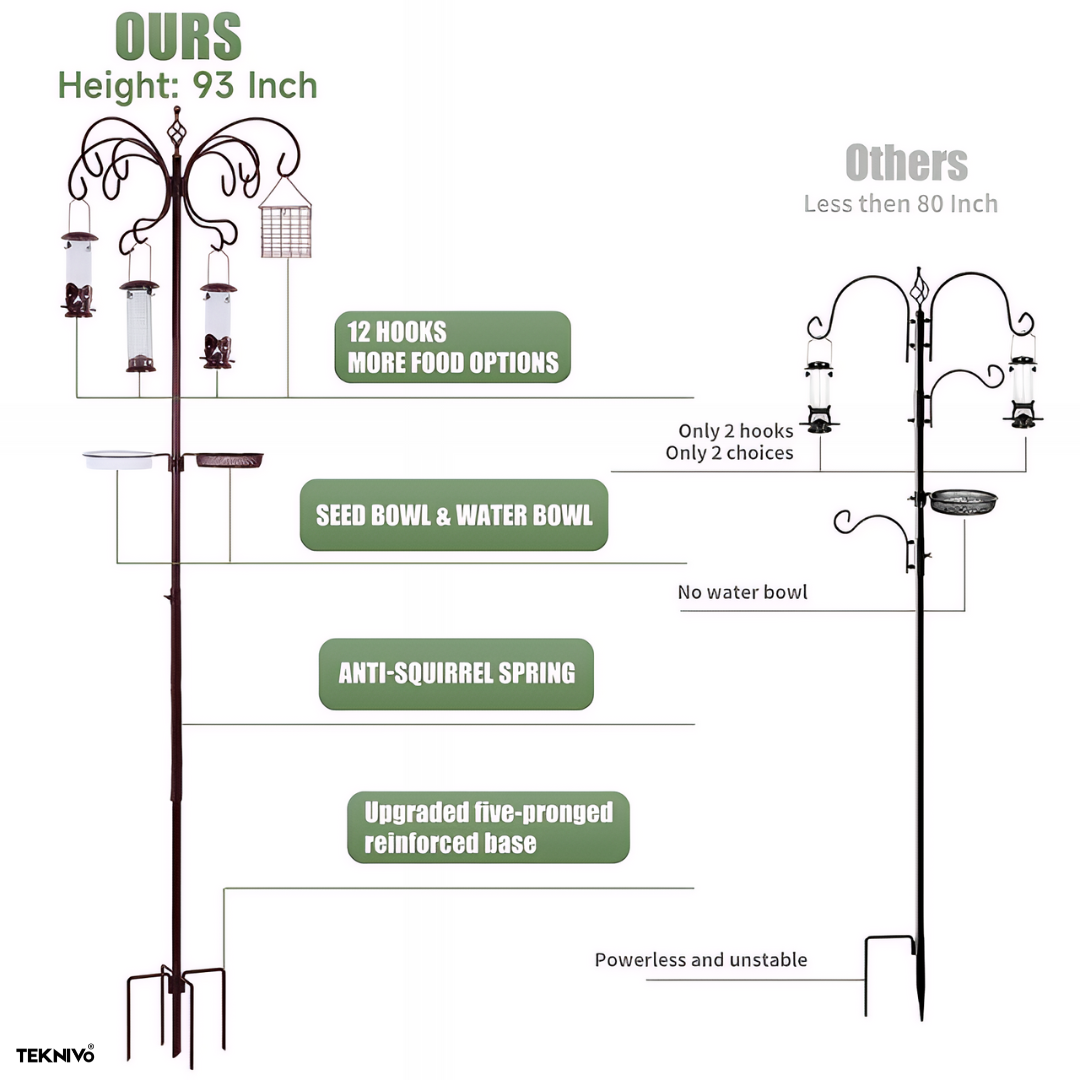 Absolutely. Standing 93 inches tall, the Teknivo FeatherGuard™ is designed for long-term, daily outdoor enjoyment. Its sturdy build, squirrel-proof spring, and multiple feeders make it reliable year-round.