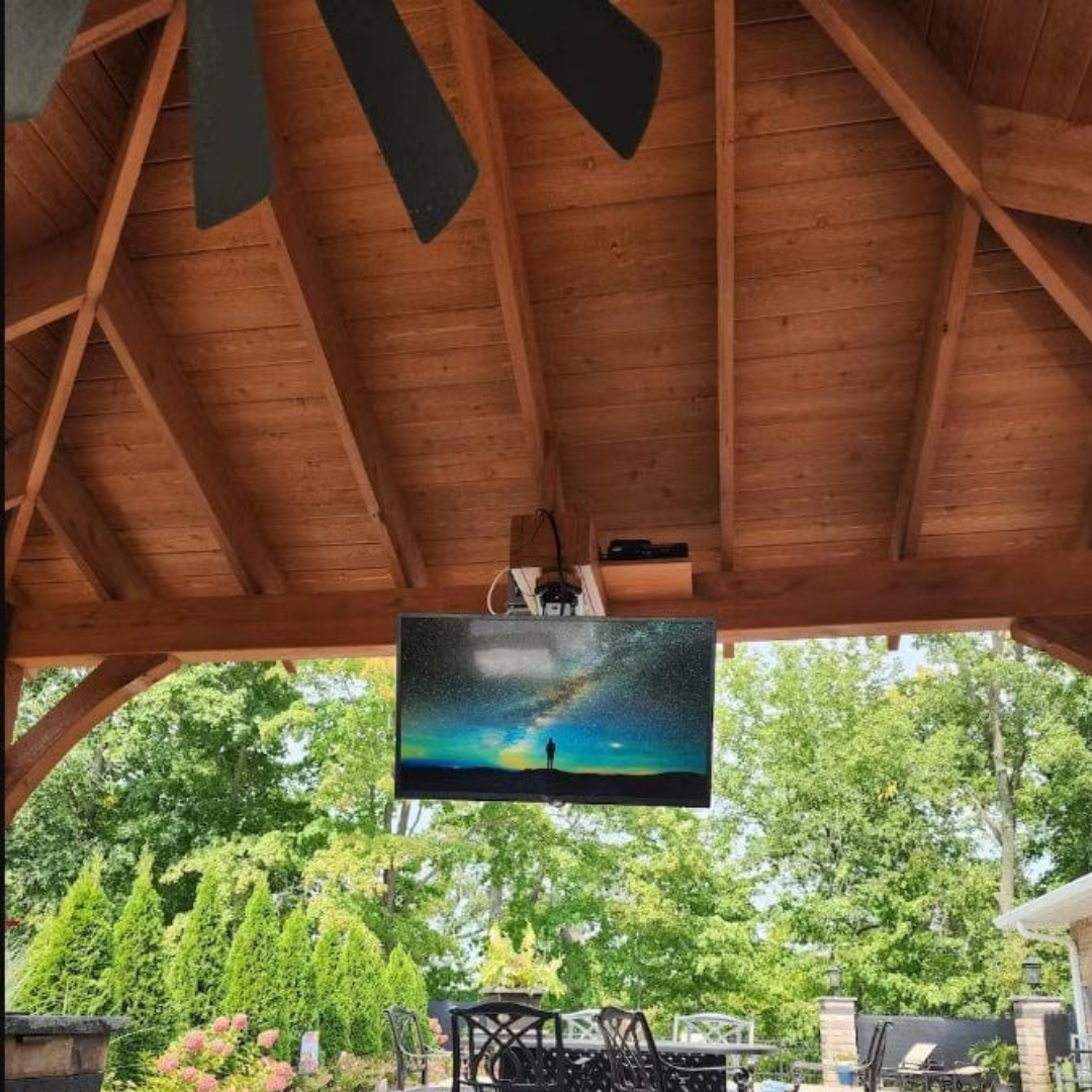 We set up the Teknivo Solis inside our wooden gazebo, and it instantly elevated the space. The image quality is sharp and cinematic at night, and it holds up beautifully against heat and humidity. It’s professional-grade performance in a home setting.