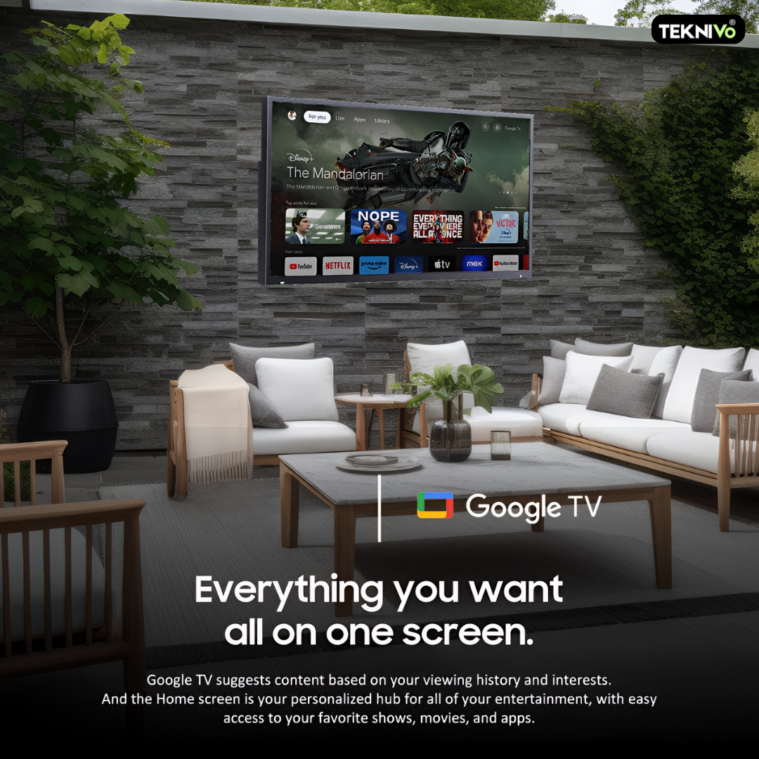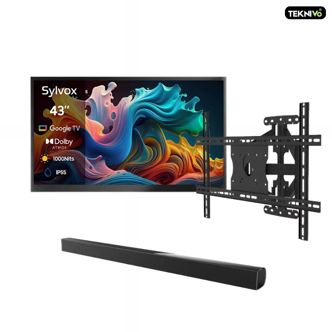 Perfect for open patios, sunny backyards, cafés, or rooftop lounges—the Teknivo Solis™ is engineered for all-weather viewing. Its ultra-bright QLED display and IP55 protection ensure crystal-clear visuals even under direct sunlight.