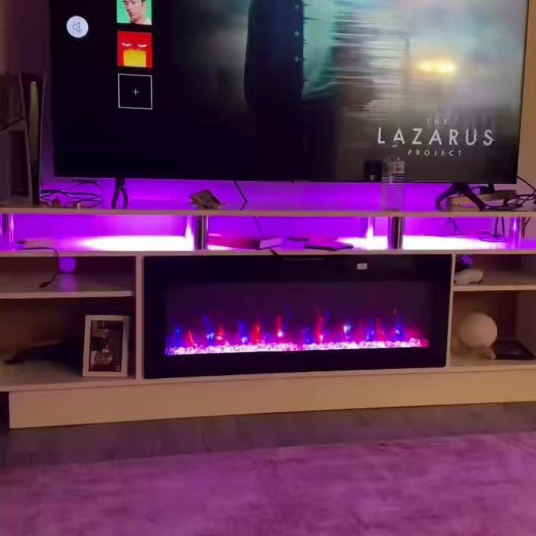 The Teknivo Spark has completely elevated my living room. The blue LED glow with the fireplace effect looks stunning at night and makes movie time so much cozier. It was easy to set up, and the heat function adds just the right touch of warmth. I love how sleek it looks with my TV setup.