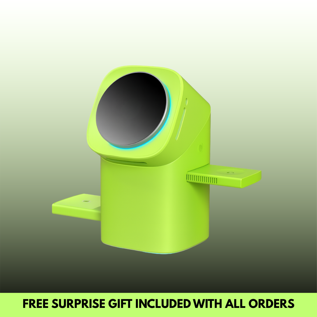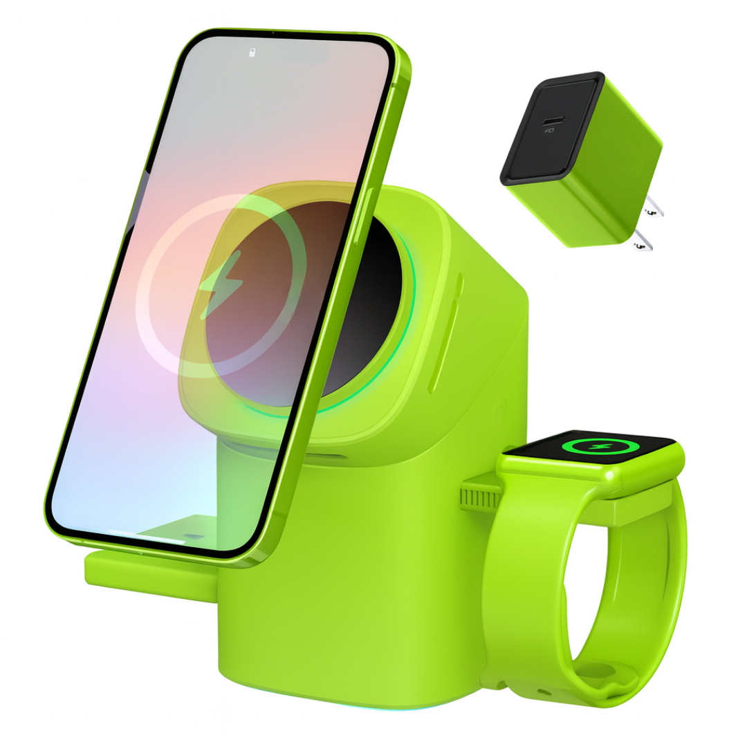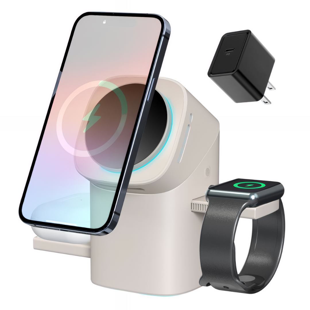 This little charger is a game-changer. I keep it next to my bed and it quietly charges my iPhone, watch, and AirPods overnight with no noise or overheating. The soft glow is subtle and doesn’t disturb my sleep. Super convenient and worth every penny.