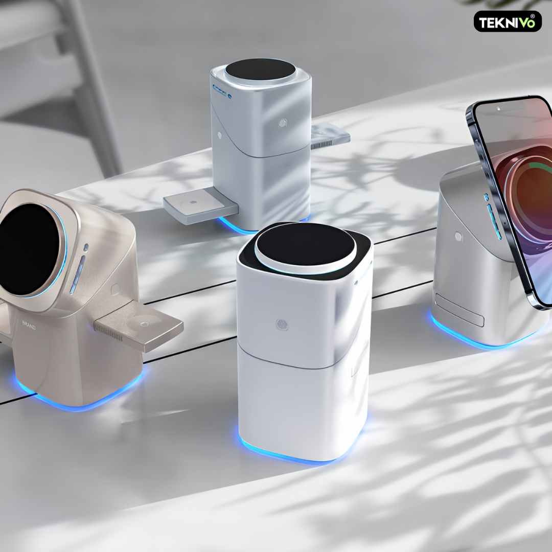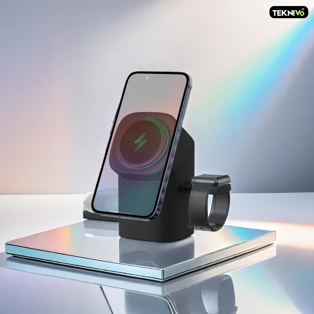 I’ve been using the Teknivo TriCharge for about a week, and I’m seriously impressed. It’s sleek, the blue light looks amazing, and it charges my phone and watch effortlessly. Setup took less than a minute, and it fits perfectly beside my laptop. Love how clean and modern it looks.