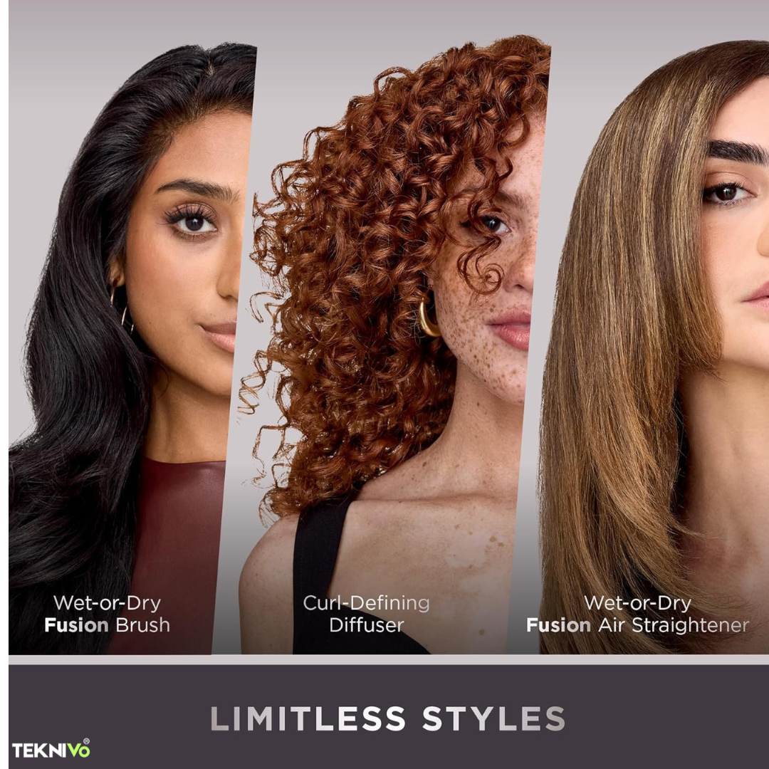 From fine, straight hair to thick, curly locks, the Teknivo TurboFusion™ is designed for all. With ceramic plates, airflow styling, and multiple attachments, it delivers smooth, frizz-free results for every hair type.
