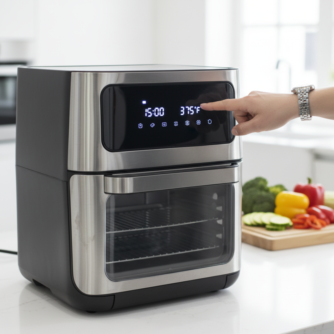 The touch display on the Teknivo V9 makes it super easy to use. I just set the time and temperature, and the food comes out perfectly every time. I mainly use it for quick snacks like fries and nuggets, and it’s so much healthier than frying with oil. It heats up fast and looks great on my countertop too.